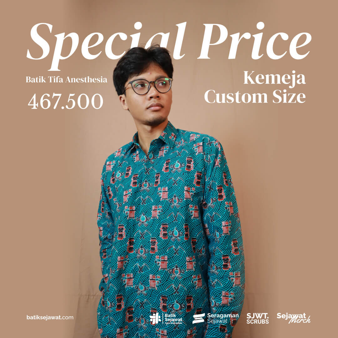 Batik Sejawat mempersembahkan batik motif Anestesi perdananya, Tifa Anesthesia, yang memadukan motif tradisional Papua, Tifa Honai dan alat medis anestesi. Terbatik dalam kain gamelang srimpi dengan memastikan kelembutan dan kenyamanan bagi para pemakainya.